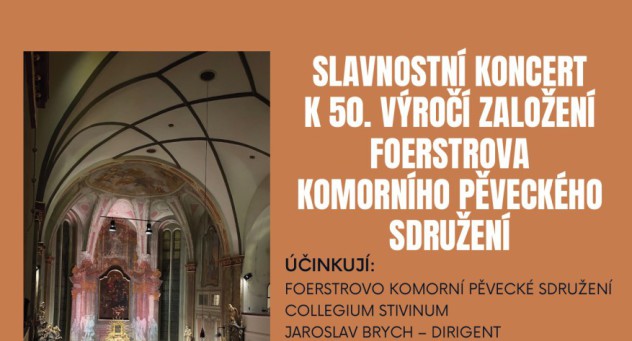 Přijměte pozvání na slavnostní koncert k 50. výročí založení Foerstrova komorního pěveckého sdružení, který se koná v neděli 19. října 2025 od 18 hodin ve Velkém sále paláce Žofín v Praze.