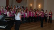 Chtěla bych Vám však prozradit zcela jinou věc. To, co znají jen sboristi a sboristky. A to je práce sbormistra. Posluchači ho celou dobu provedení skladby nevidí. Ale my…! Ve chvíli, kdy rozdá tóny v akordu a zvedne ruce, celý sbor již nevidí nic okolo a očima doslova visí na svém sbormistrovi. Jako by v tu chvíli spojil celý sbor malými provázky a s každou z nás udržuje oční kontakt. Je pravda, že se na nás dokáže i zamračit a v tu chvíli ve stresu vzpomínáme, jak nás to na zkoušce učil. Ale jindy, pokud se daří, tak jako na tomto koncertu, dokáže úsměvem a mrknutím oka ocenit celý sbor a občas nás nějakým gestem rozesměje. Všichni sledujeme jen jeho oči, kterými nás kontroluje, rty, které zpívají s námi a ruce, jejichž drobnými gesty z nás dokáže dostat to, co právě ve skladbě cítí a co potřebuje. Po skladbě spustí ruce a drobnou úklonou poděkuje za odvedenou práci. Teprve pak se otočí k posluchačům a i my se můžeme podívat na jejich reakce. To je kouzlo, které dokáže jen člověk, který se celý život věnuje hudbě a s hudbou je naplněný.