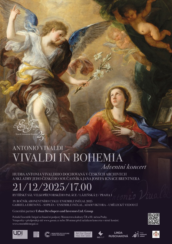 Zveme Vás na tradiční adventní koncert, poslední událost letošního 19. ročníku abonentního cyklu Ensemble Inégal 2025. Bude se konat v neděli 21. prosince 2025 od 17:00 hodin v reprezentativních prostorách Rytířského sálu Velkopřevorského paláce na Malé Straně v Praze a zazní na něm Vivaldiho díla dochovaná v českých archivech i hudba jeho současníka Jana Josefa Ignáce Brentnera.